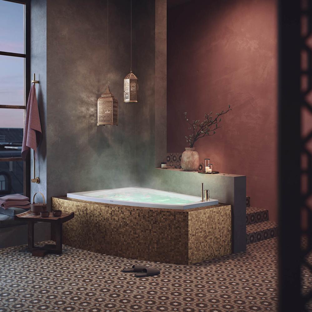 Massagebadkar Kungshamn tillverkas i förstärkt akryl Nordurit®. Modellen finns i både höger- och vänsterutförande. Nordurit®-förstärkningen håller värmen blängre och ger en ännu lägre ljudnivå i massagebadkaret då materialet är ljuddämpande. På sargkanten finns det plats för blandare.