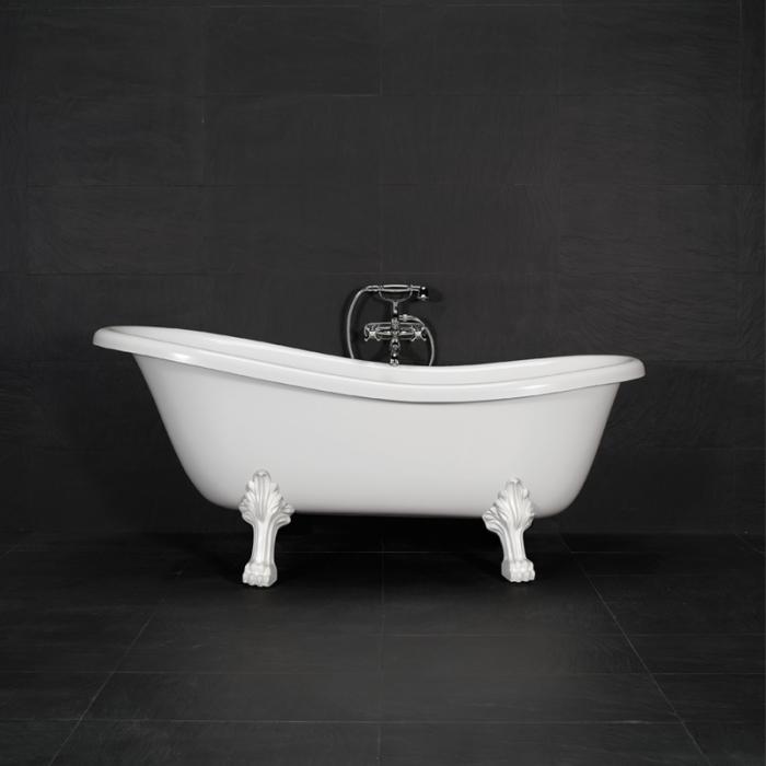 Westerbergs badkar Victoria är tillverkat av solid gjutmarmor och designad med klassisk elegans.Badkaret är perfekt för dig som har lite mindre utrymme men prioriterar avslappnande badstunder.Victoria finns i vitt och svart/vit utförande. Välj tassar i krom, vitt eller antikmässing.