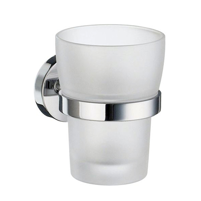 Smedbo Home hållare med frostat tandborstglas eller porslin (endast för hållare i polerad krom). Hållare i polerad krom eller mattborstad krom. Dold fastsättning.