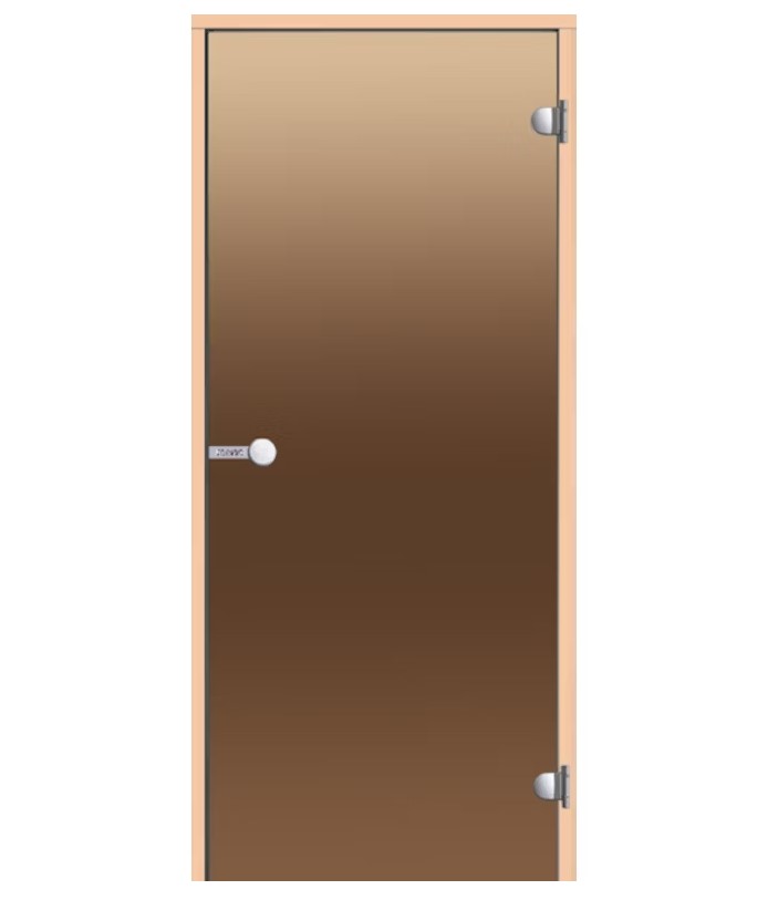 Harvias glasdörrar kommer i brons, klar, grå och satinglas, olika storlekar och karmmaterial.