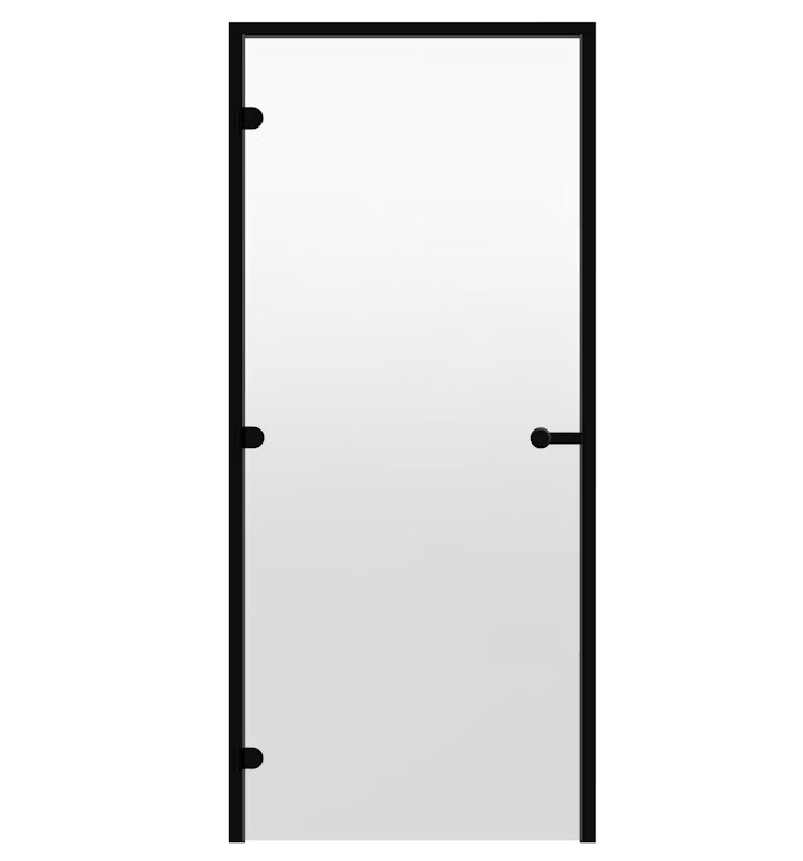 Dörren Harvia Black Line med aluminiumkarm är en elegant lösning för utrymmen där mycket god fuktbeständighet krävs.
