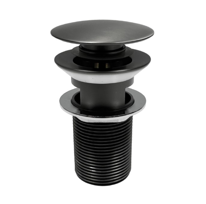 Svedbergs Bottenventil, Blyertssvart. Pop-up Bottenventil helt i metall för handfat med bräddavlopp.