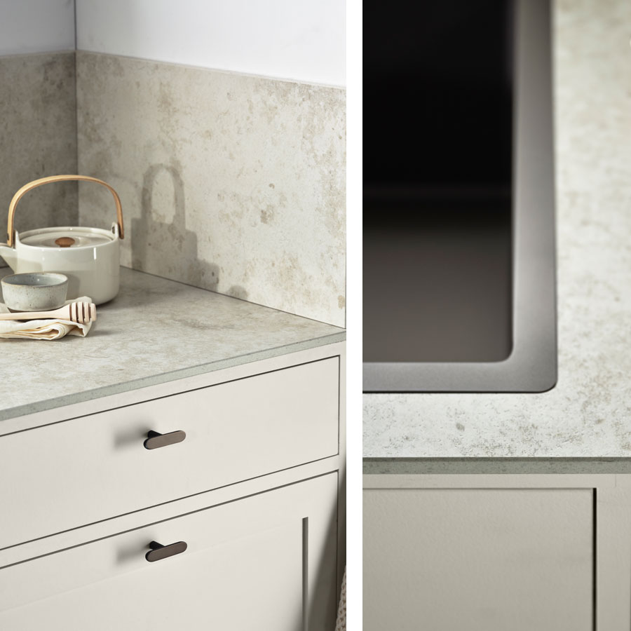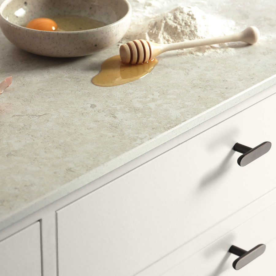 Jura White Honed är en bänkskiva som kombinerar klassisk estetik med modern teknik för att skapa en yta som är både funktionell och vacker. Inspirerad av den populära jurakalkstenen, känd för sina fossilliknande detaljer, håligheter och subtila ådringar, har Jura Select fångat stenens tidlösa skönhet och anpassat den för dagens behov.