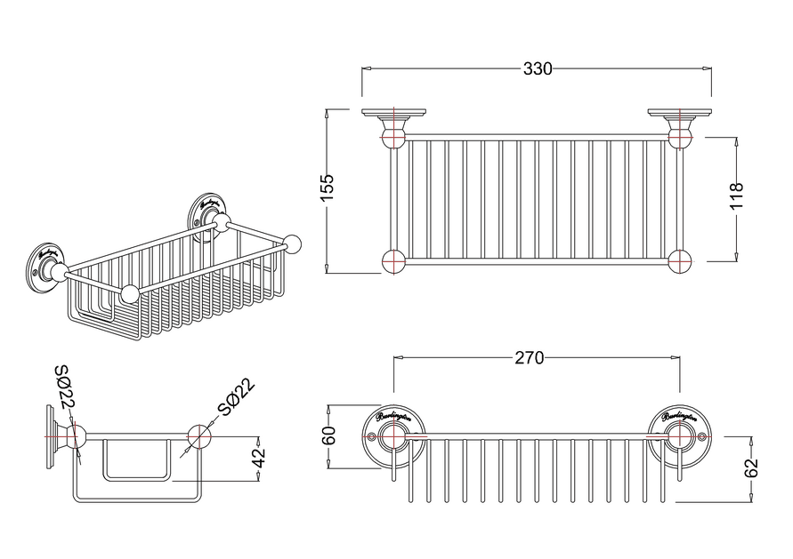 Burlington duschkorg i krom, monteras med skruvar.