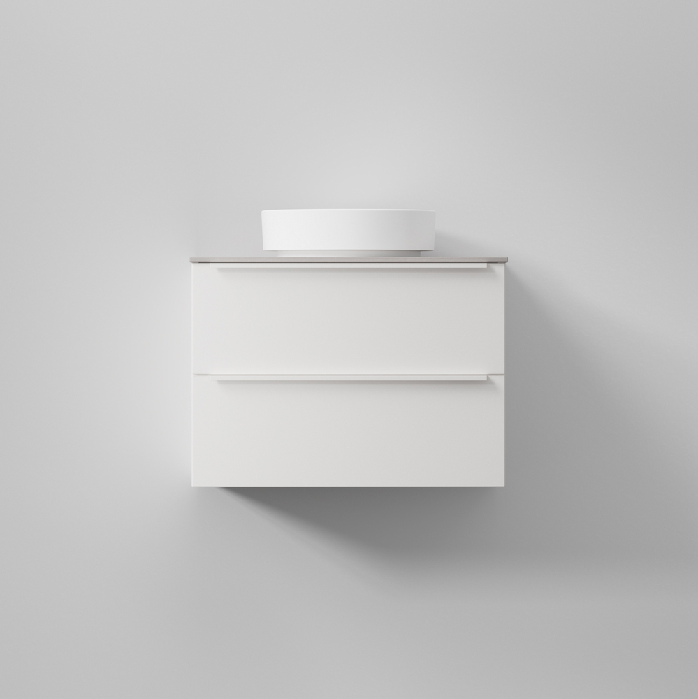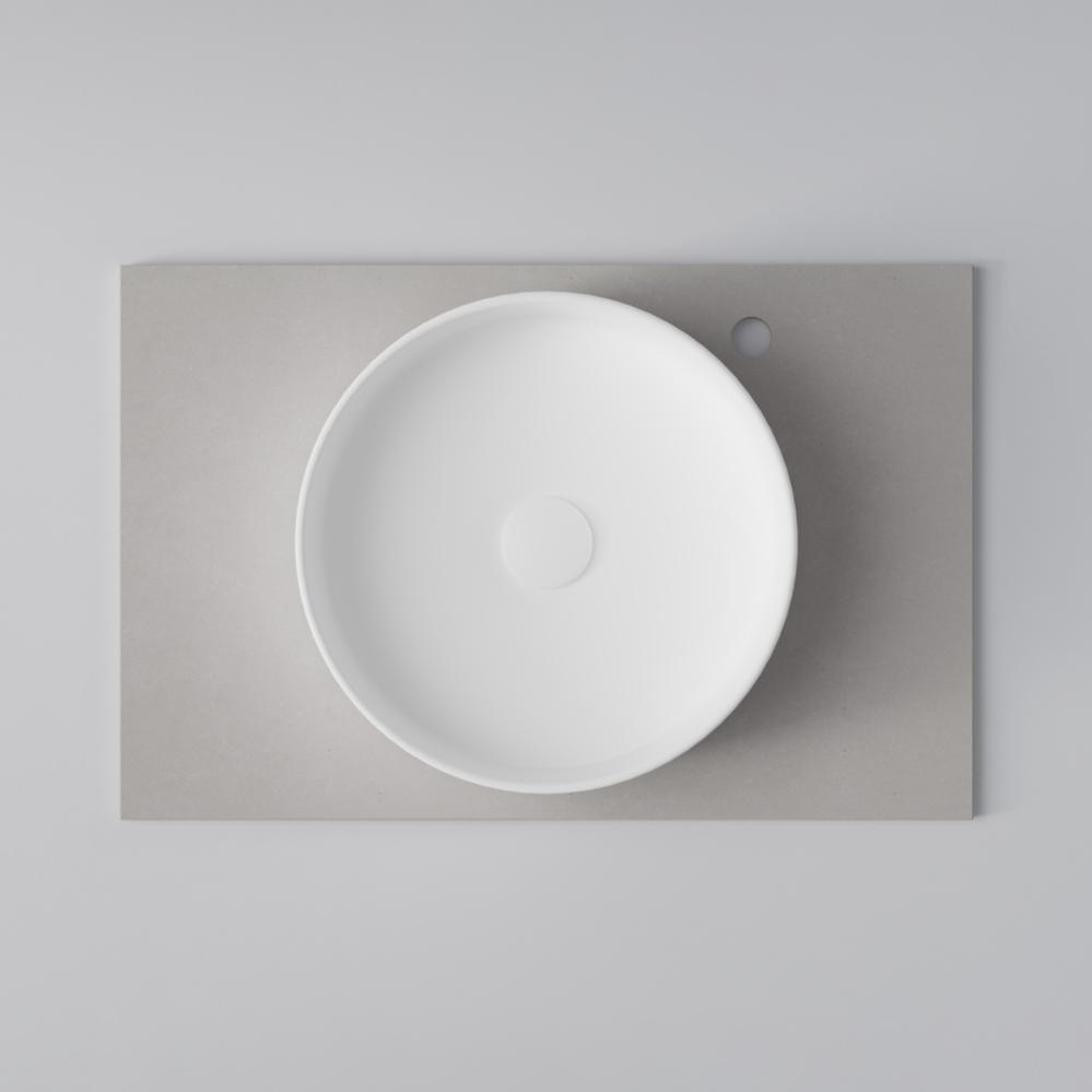 Önskar du en lösning med ett ovanpåliggande tvättställ? Kombinera Flow bänkskiva (finns i Solid Surface i vit, grå och svart) med Soak tvättställ (vit eller svart mattporslin samt Solid Surface).