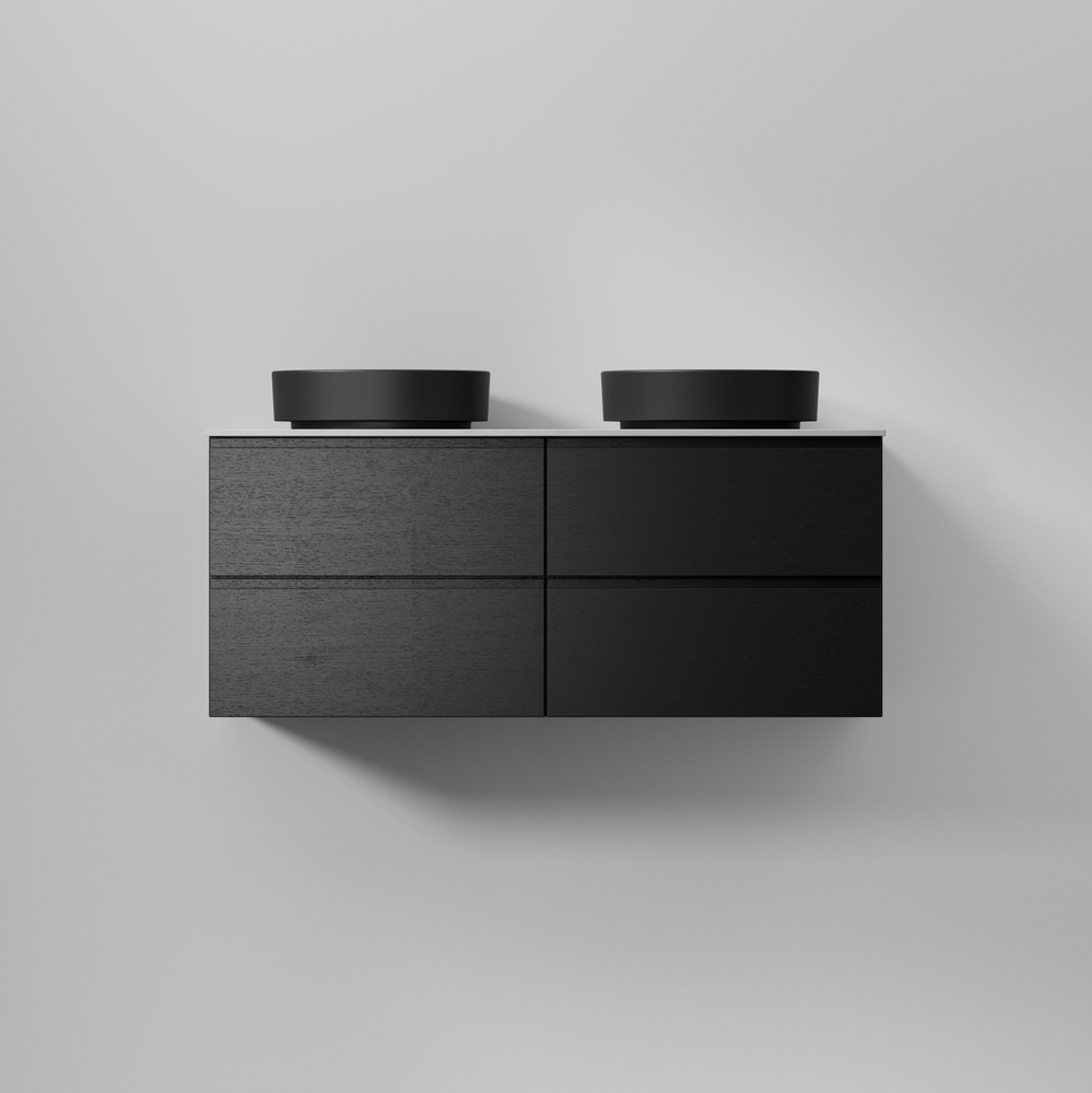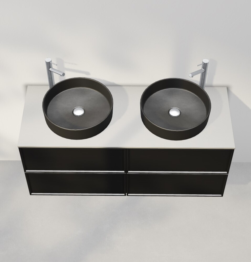 Önskar du en lösning med ett ovanpåliggande tvättställ? Kombinera Flow bänkskiva (finns i Solid Surface i vit, grå och svart) med Soak tvättställ (vit eller svart mattporslin samt Solid Surface).