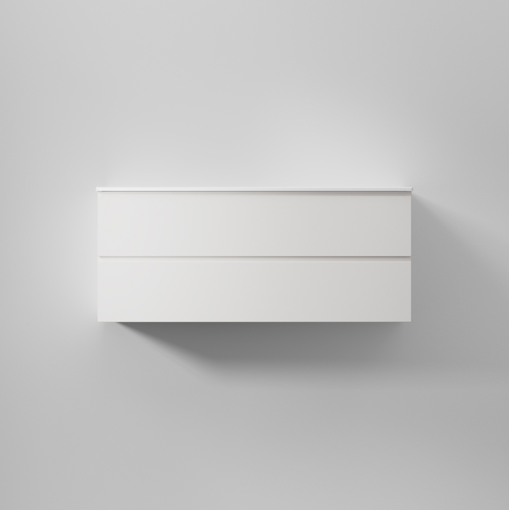 XS-kommoden har ett djup på 390 mm och passar utmärkt i mindre badrum. Övriga modeller har ett djup på 450 mm och erbjuder flera valmöjligheter vad gäller tvättställ, bänkskivor och färger.