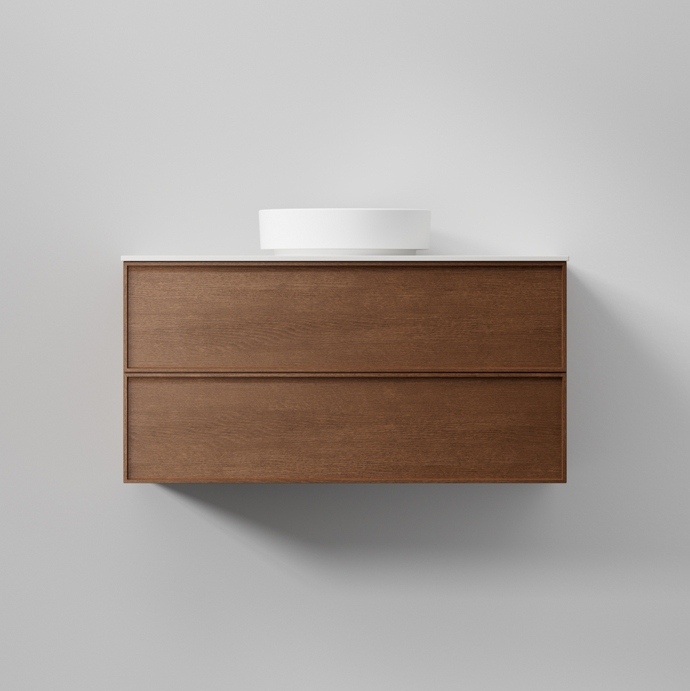 • Flexibla tvättställsalternativ: Välj mellan det solida tvättstället Smooth i solid surface, porslinstvättställ i olika höjder eller bänkskiva med ovanpåliggande tvättställ.