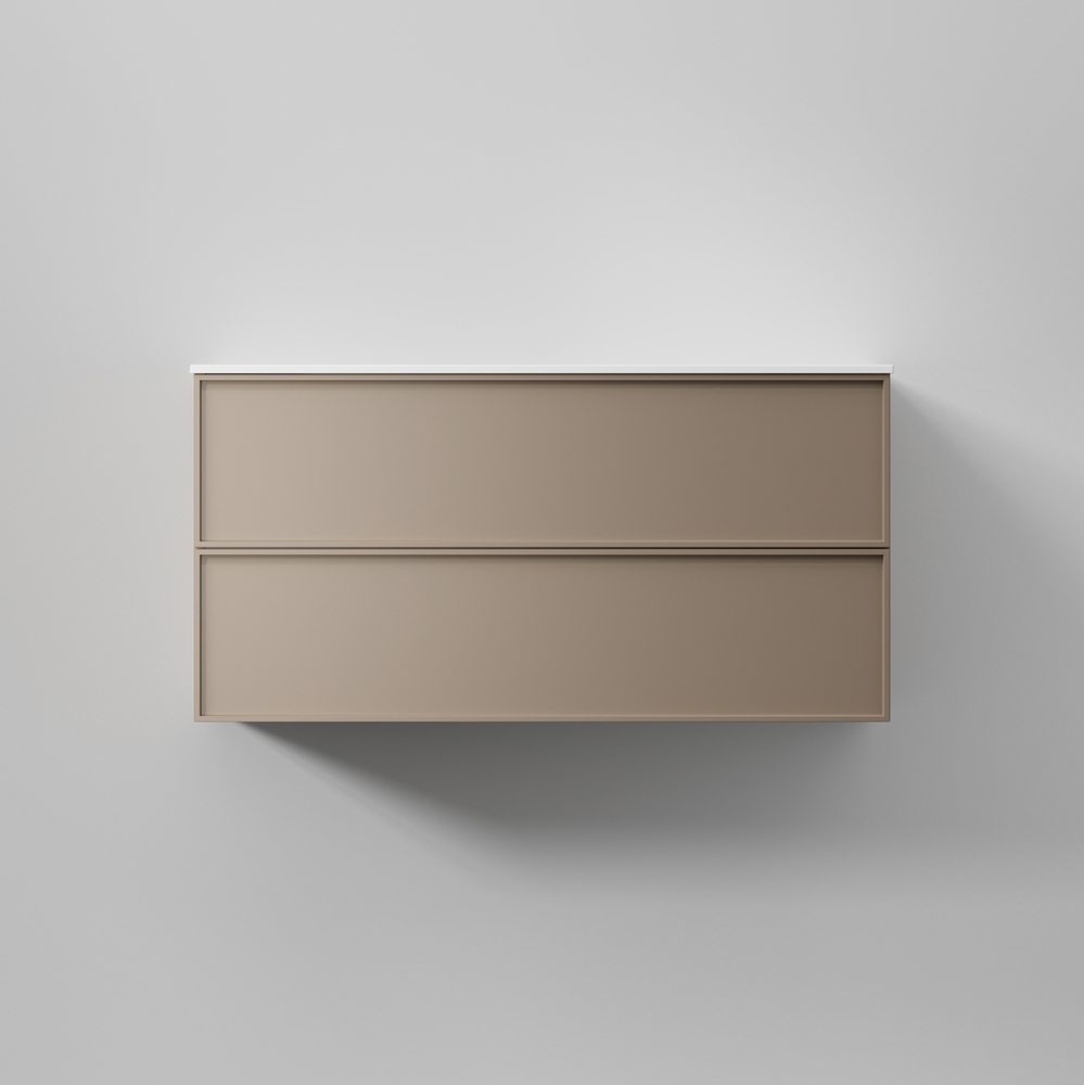 XS-kommoden har ett djup på 390 mm och passar utmärkt i mindre badrum. Övriga modeller har ett djup på 450 mm och erbjuder flera valmöjligheter vad gäller tvättställ, bänkskivor och färger.