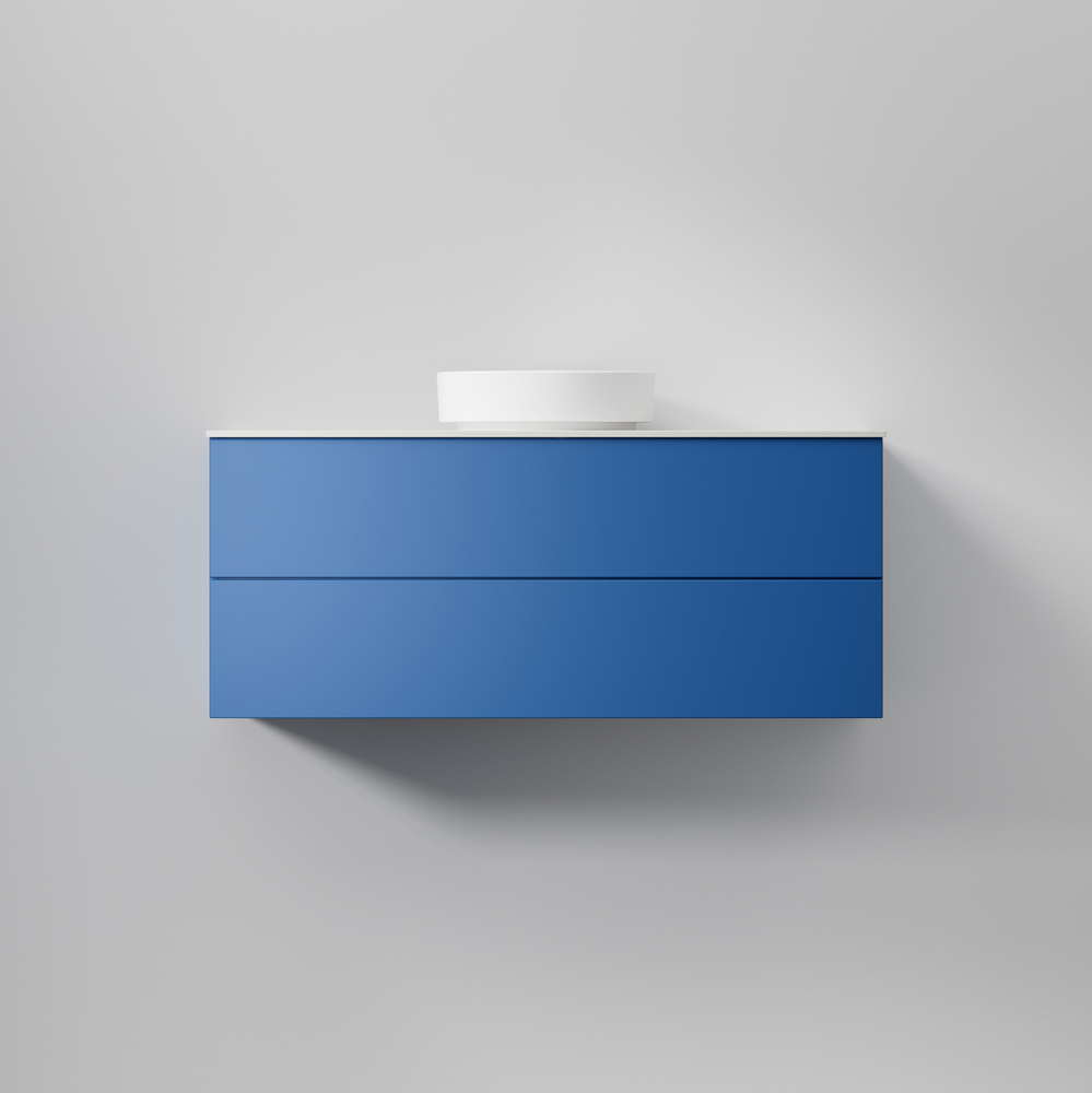 XS-kommoden har ett djup på 390 mm och passar utmärkt i mindre badrum. Övriga modeller har ett djup på 450 mm och erbjuder flera valmöjligheter vad gäller tvättställ, bänkskivor och färger.