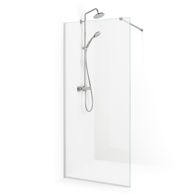 Macro Design Spirit Skärmvägg fast består av en fdast vägg tillverkad i 6 mm härdat säkerhetsglas med draperistång och golvfäste. Draperistången är 1 meter lång och kapbar. Väggprofilen klarar rörgenomföring upp till 30 mm och det finns extra påbyggnadsprofil att köpa till vid behov.