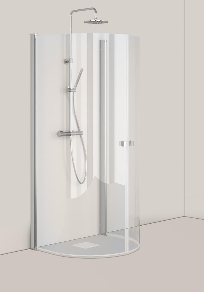 - Snabbmonterad böjd, svängbar duschdörr med profil i svartlackerad aluminium