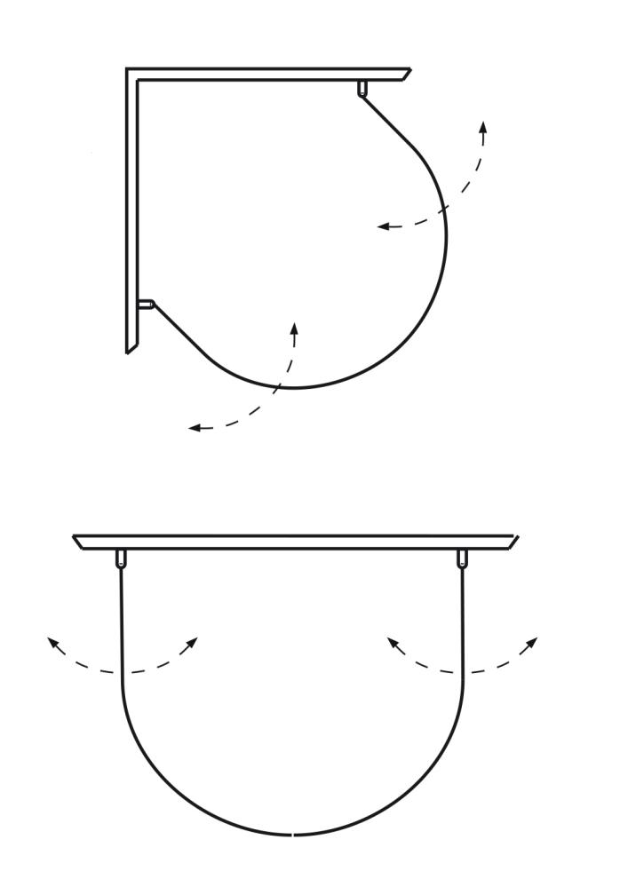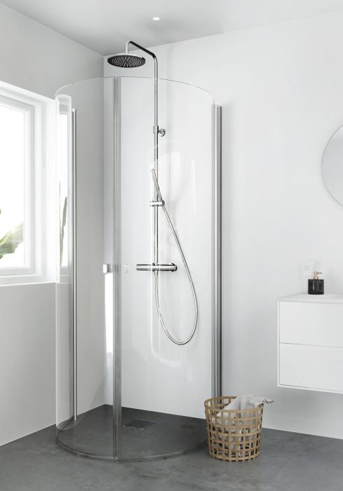 Den speciella U-formen gör att duschhörnet kan installeras på olika sätt t.ex. i hörn, med hänsyn till fönster och mitt på en vägg.