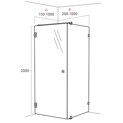 ARC 13 består av en öppningsbara dörr och en fast vägg. Kostnadsfri måttanpassning på höjd och bredd inom angiven intervall. A-måttet (dörren) går att få 300-1000 mm och B-måttet (fast vägg) går att få 400-1200 mm. Modellen är vändbar. Standardhöjd är 2000 mm ovankant glas (2035 mm ovankant stag)