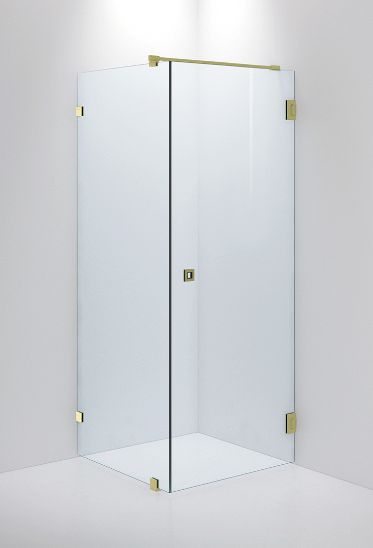INR ARC 13 Original Hörndusch, Standardmått är en elegant hörndusch i stilren, avskalad design med 8 mm säkerhetsglas och stilrena beslag utan tätningslister och magnetlister. Den fasta väggen har beslag mellan vägg och golv som hjälper till att hålla stabiliteten i glaset. Levereras med två golvfästen om den fasta väggen är bredare än 1000 mm.