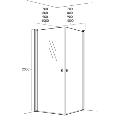 Observera att PILE bygger 100 mm vilket innebär att om du vill ha en duschhörna som bygger totalt 900x900 mm ska du beställa dörrar som är 800x900 mm för att det ska bli rätt mått efter montering.