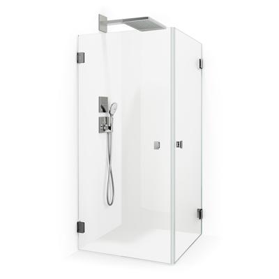 Macro Design Grace Rak DSLI Hörndusch med raka väggar i stilren och minimalistisk design. Duscharna från Macros serie Grace är tillverkade i 8 mm härdat säkerhetsglas och har stilrena och snygga gångjärn och handtag som går att få i olika färger. Dörrarna går att öppna hela vägen ut vilket ger en rymlig öppning. Färgen på handtagen följer färgen som du väljer på beslagen. Alla glas är i serien Grace av typen Briljant, vilket innebär att det är det klaraste glaset på marknaden. Höjden på glasen är 2000 mm och måtten för bredden avser invändigt hörn till utsida monteringsbeslag.