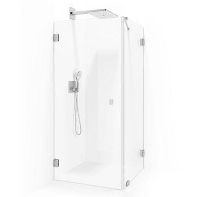 Välj storlek, glasfärg och färg på beslag och handtag. Det främsta måttet anger bredden på den fasta väggen. Exempel 800x900 = 800 fasta väggens bredd, 900 dörrens bredd.