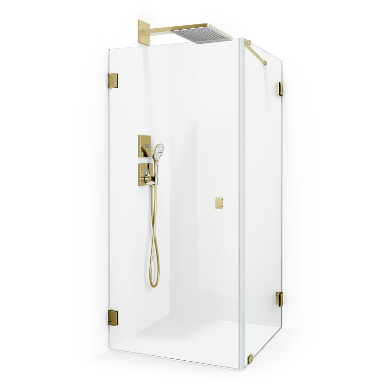 Välj storlek, glasfärg och färg på beslag och handtag. Det främsta måttet anger bredden på den fasta väggen. Exempel 800x900 = 800 fasta väggens bredd, 900 dörrens bredd.
