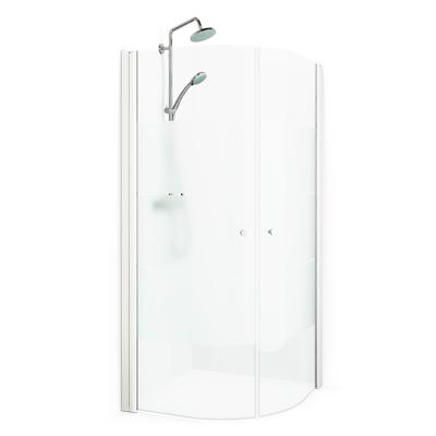 Välj mellan olika bredder, glasfärger och profilfärger. Denna modell är vändbar så du behöver inte välja höger- eller vänstermodell. Storleken som är 900x900 finns med ytbehandlingen Cristal Guard. Detta innebär en ytbehandling som gör att vatten och kalk inte fastnar på glaset vilket gör den mer lättstädad.