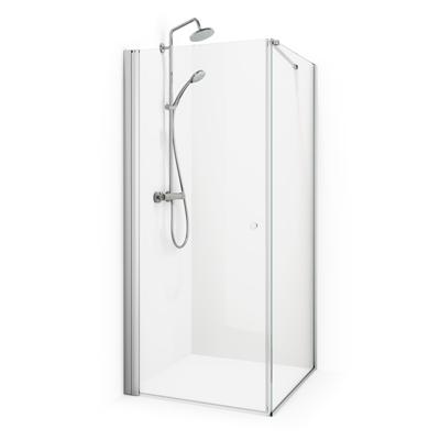 Välj mellan olika bredder, glasfärger och profilfärger. Det främsta måttet anger bredden på den fasta väggen. Exempel 800x900 = 800 fasta väggens bredd, 900 dörrens bredd.
