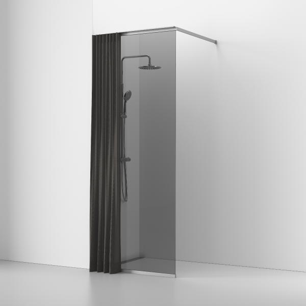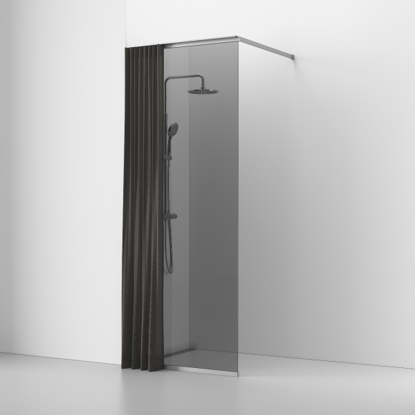Kombinera din Langfoss skärmvägg med ett textilgardin för att skärma av duschutrymmet, ge insynsskydd och ge badrummet en mjukare och lyxigare känsla. Gardinen absorberar ljud men är också praktiskt och snyggt. Gardinen hänger på utsidan av glasväggen och kan skjutas fram och tillbaka i gardinskena som köps separat.