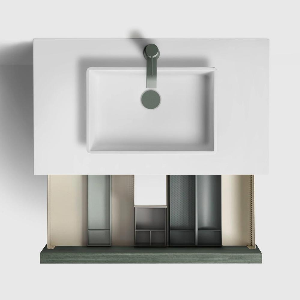 Underskåpet har två lådor med grepplist i massivt trä i ovankant av lådfronterna som är både snygg och praktisk. Lådorna har mjukstängande skenor vilket gör att lådorna glider lätt och stängs tyst. Underskåpets stomme och fronter har en yta av äkta träfanér i olika färger. Välj mellan de olika Toniton färgerna Ash Green, Deep Blue, Deep Grey, Greige eller Reddish Brown.