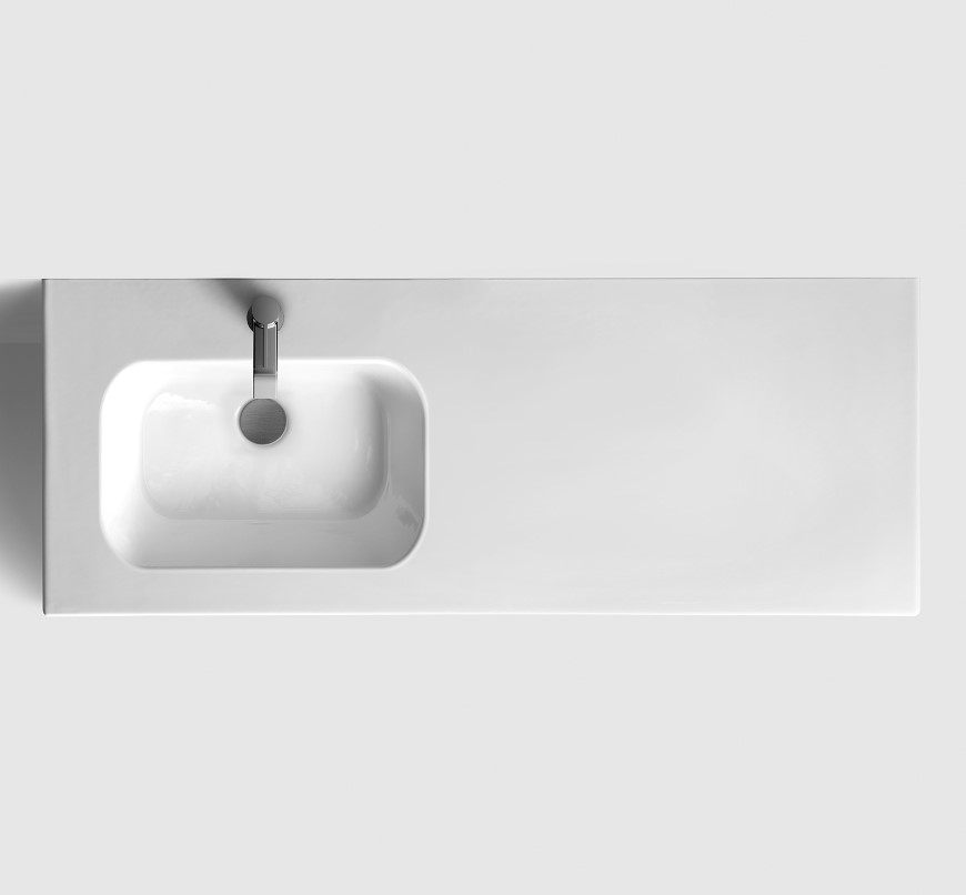 Välj toppskiva i granitkeramik, porslin eller vit solid surface. Vattenlås ingår. Komplettera med blandare och bottenventil i matchande kulörer eller metall.
