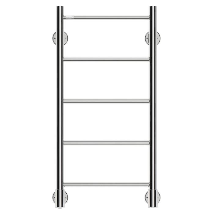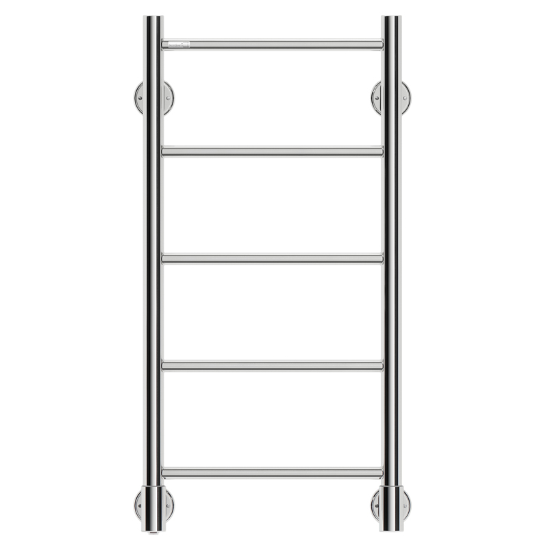 Nordhem Almenäs handdukstork för elanslutning har en stilren design som förenar estetik, funktion och kvalitet på ett smakfullt sätt. De tunna, rostfria och polerade stålrören skapar en minimalistisk känsla samtidigt som det blir ett bra och luftigt utrymme mellan handdukarna. De vackert avslutade ändarna och väggfästena är detaljer som bidrar starkt till det snygga helhetsintrycket.