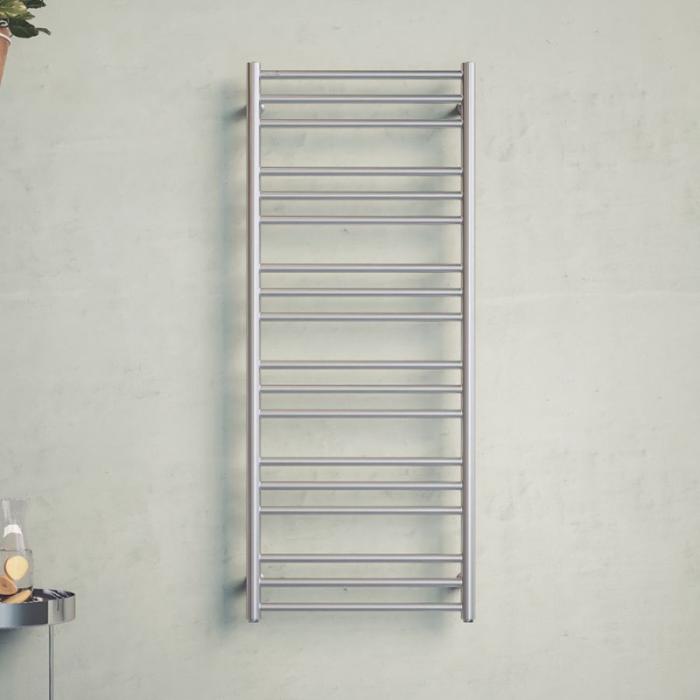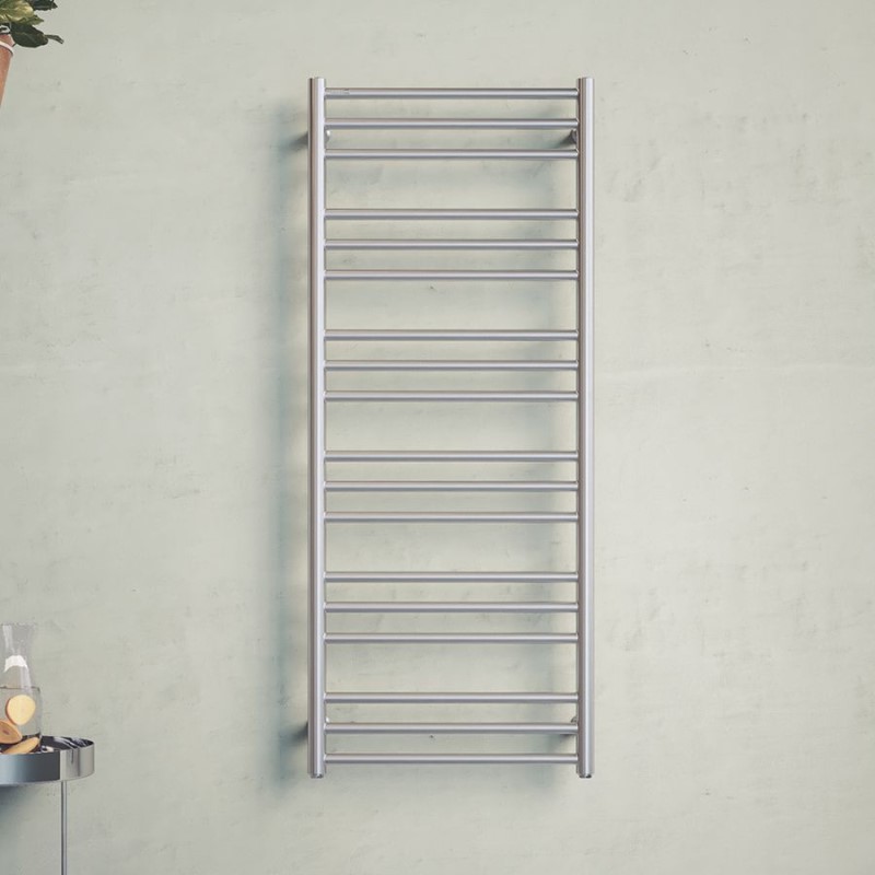 Nordhem Solliden handdukstork har en enkel och tidlös design. Välj mellan olika storlekar och kromad eller rostfri yta.