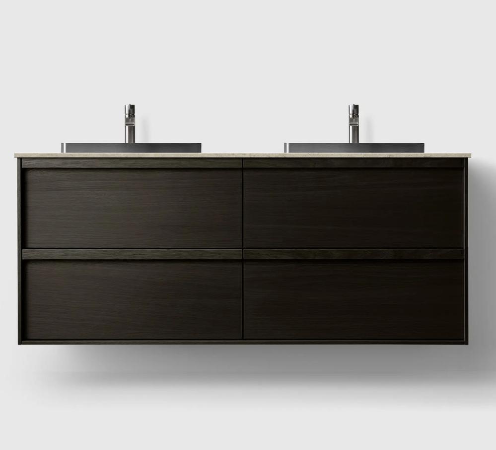 Haven H2/140 Kommod i Dark Wood med bänkskiva och nedsänkt tvättställ