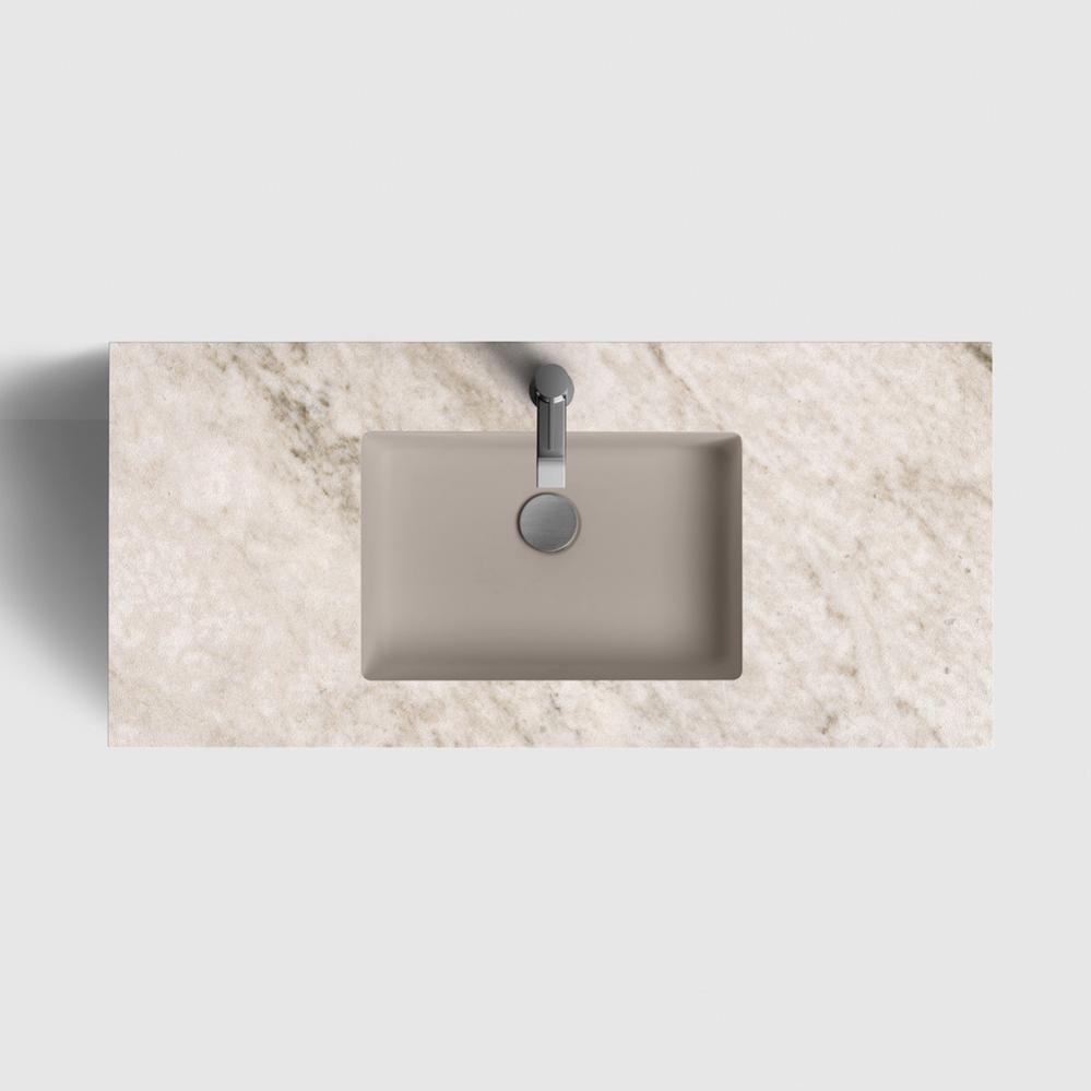 Till denna variant ingår ett porslinstvättställ. Tjockleken på tvättstället är endast 15 mm vilket ger ett nätt och stilrent utseende. Välj mellan blank porslin eller matt porslin i olika färger.