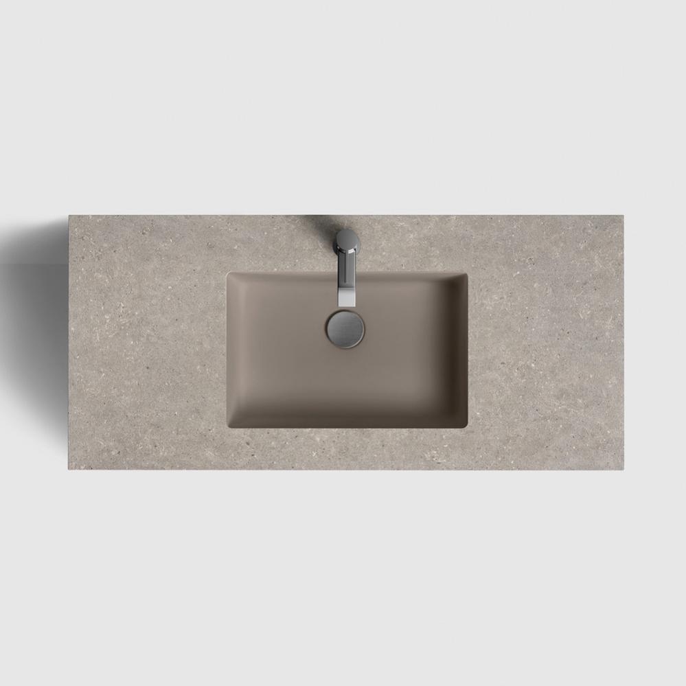 Till denna variant ingår ett porslinstvättställ. Tjockleken på tvättstället är endast 15 mm vilket ger ett nätt och stilrent utseende. Välj mellan blank porslin eller matt porslin i olika färger.