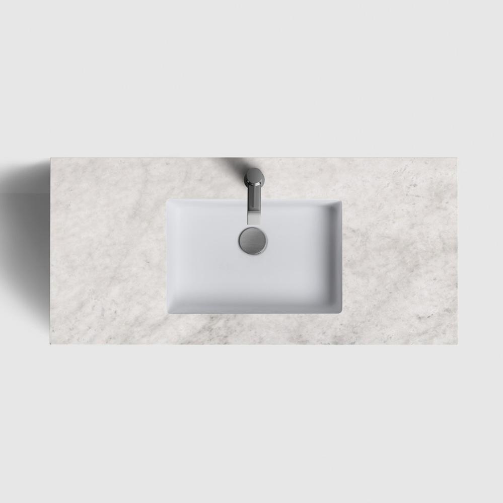 Till denna variant ingår ett porslinstvättställ. Tjockleken på tvättstället är endast 15 mm vilket ger ett nätt och stilrent utseende. Välj mellan blank porslin eller matt porslin i olika färger.