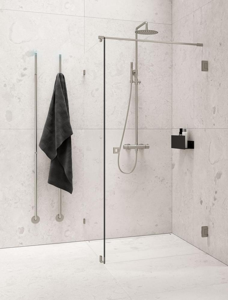 Line är en av våra mest omtyckta produkter. Med sin stringenta form och geniala konstruktion värmer Line energieffektivt din handduk samtidigt som det blå LED-ljuset i toppen ger ljus till badrummet när torken är aktiv.
