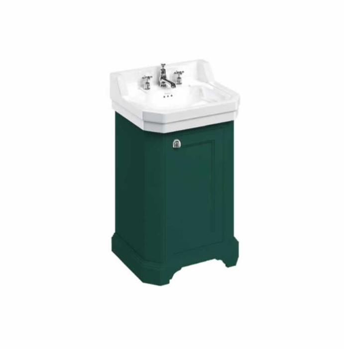 Kommod i sekelskiftesdesign för badrum, 56 cm bred, med Edwardian-handfat. Tvättstället levereras med ett blandarhål som standard, men kan även beställas med två eller tre hål, som på bilden.