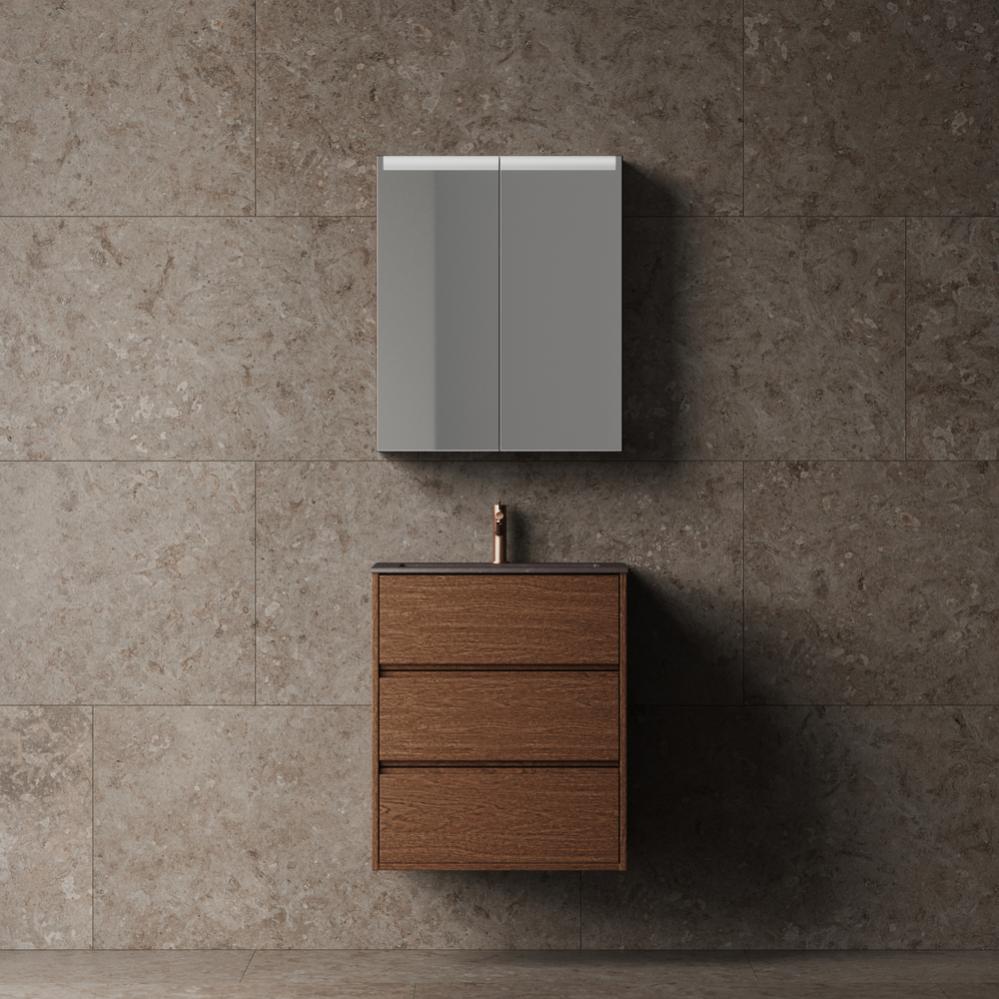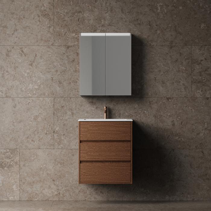 Designidén bakom Terra är en möbel som andas kvalitet, personlighet och genuint hantverk – i allt från det övergripande formspråket till de minsta detaljerna. En solitär möbel som både vill och vågar ta plats på alla tänkbara plan. Med innanförliggande fronter och fanér med större ådring än i våra övriga serier får Terra en karaktär som är lika unik som den är uttrycksfull – och som gör hela badrummet levande.