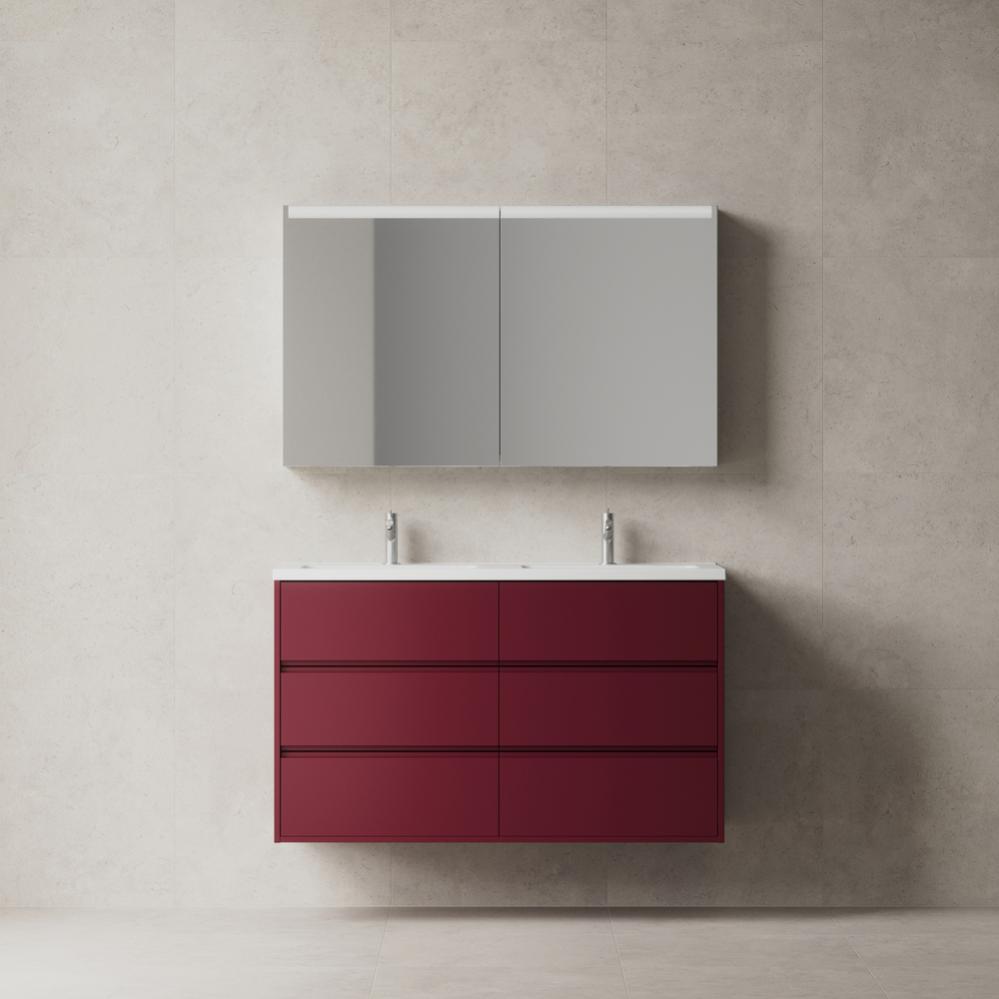 Kommoderna i Terra erbjuder maximal förvaring med tre lådor och en höjd på hela 70 cm vilket är betydligt högre än andra serier. Kommoderna finns i bredd från 60 cm till mycket rymliga 160 cm med sex lådor och dubbla hoar för familjebadrummet.