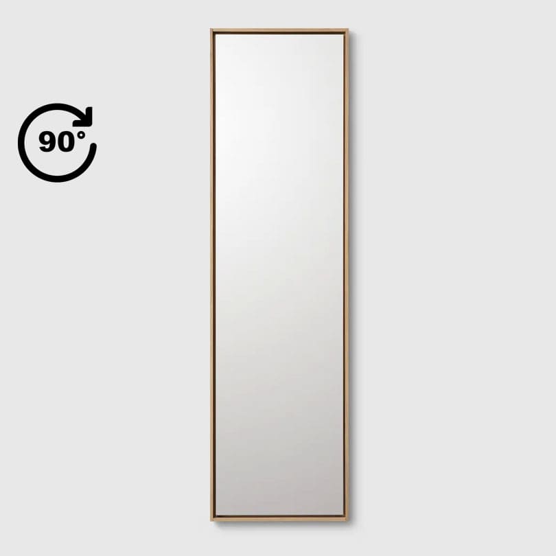 Speglar i storlekarna 50–140 cm levereras med eller utan hylla, beroende på behov och önskat uttryck. 160 cm-spegeln kan monteras både vertikalt och horisontellt, vilket ger ett större och mer flexibelt användningsområde.