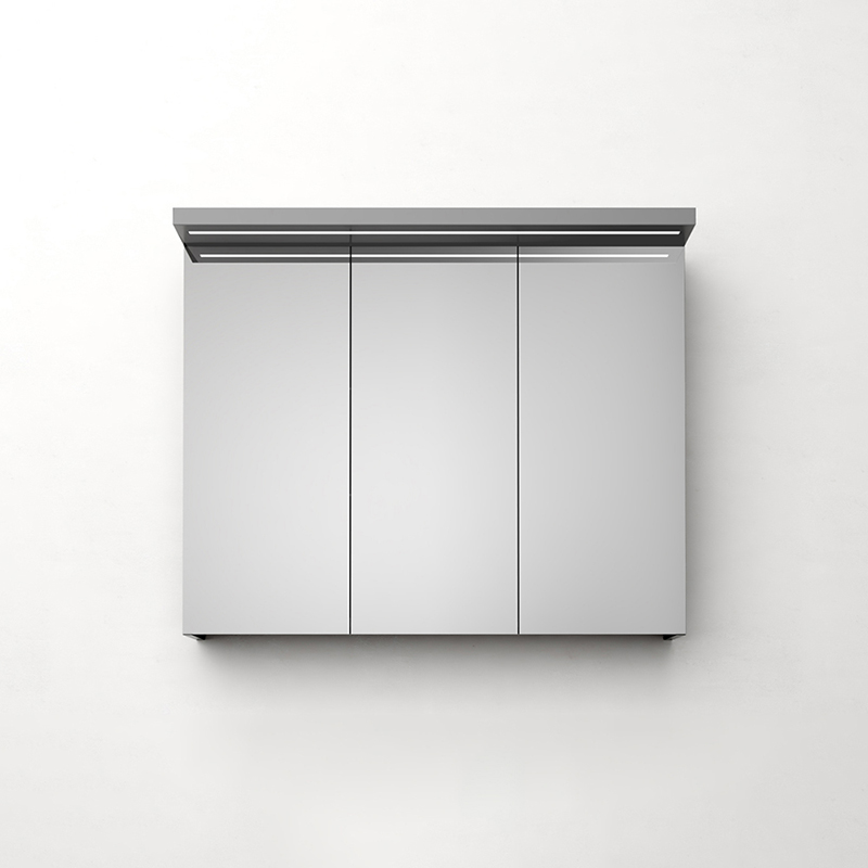 Westerbergs Samla Spegelskåp med funktionell varmvit LED-belysning som är infälld i rampen över skåpet. Speglarna är dubbelsidiga och har mjukstängande gångjärn. Skåpen i bredderna 600 och 800 har två speglar och skåpen i bredderna 900 och 1000 har tre speglar. Skåpet är utrustat med eluttag och har flyttbara glashyllor.