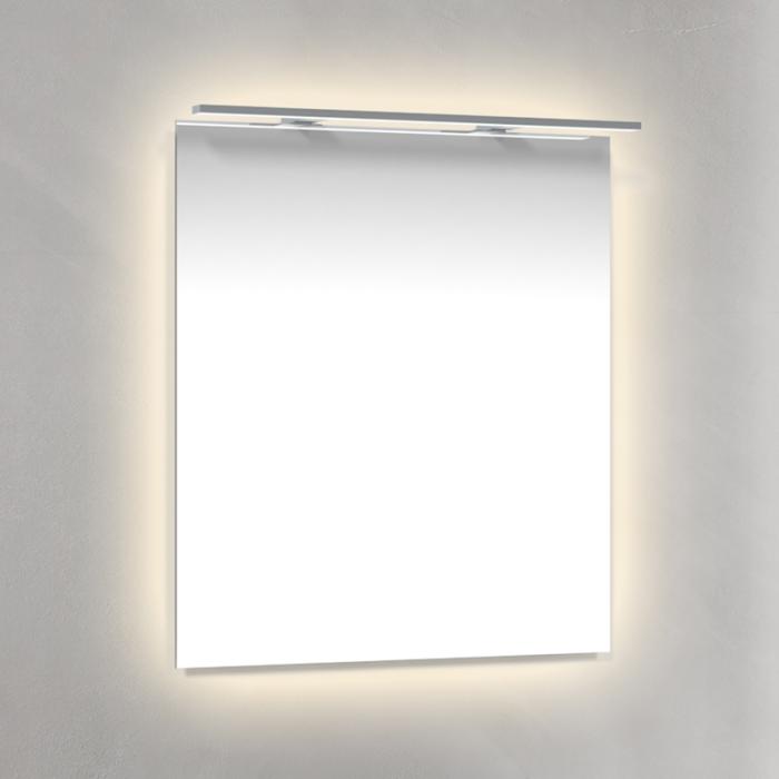 Macro Design Spegel med Rampbelysning LED. Denna spegel har en LED-belysning som sitter ovanför spegeln. Belysningen är lika bred som spegeln. Denna spegeln går att få i olika bredder och du kan välja modellen med bakomliggande belysning Ambilight som ger en snygg effektbelysning. Ramen runt spegeln är kromad. Välj mella olika bredder på spegeln.