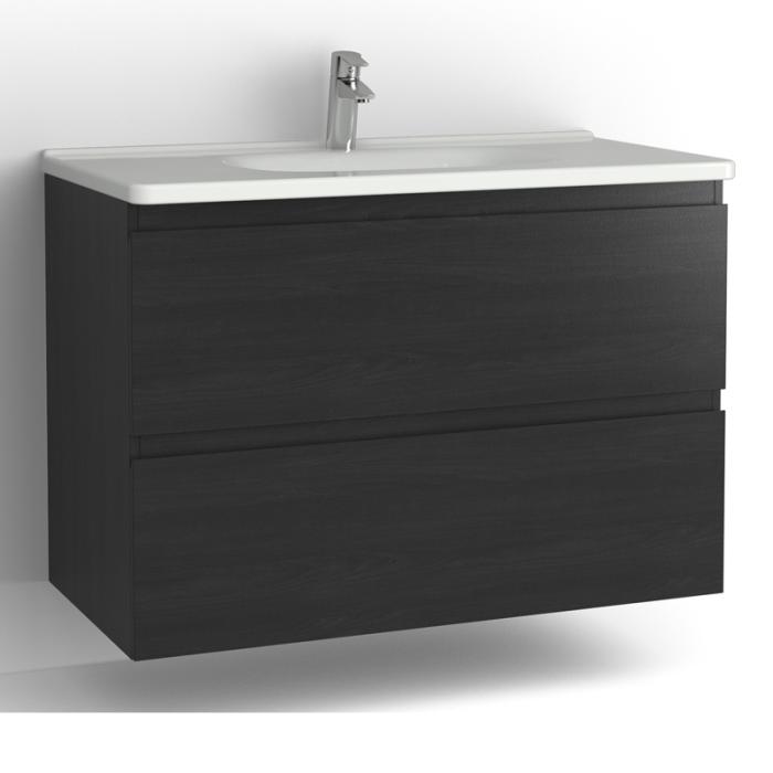 Kommoden kompletteras med Flow tvättställ med Top Solid-yta. Vattenlås Easy Clean ingår.