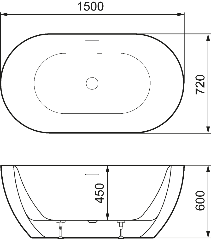 Detta symmetriska badkar har bottenventilen i mitten och en modern 30 mm bred kant. Det finns i två storlekar och har ett praktiskt överfyllnadsskydd.
