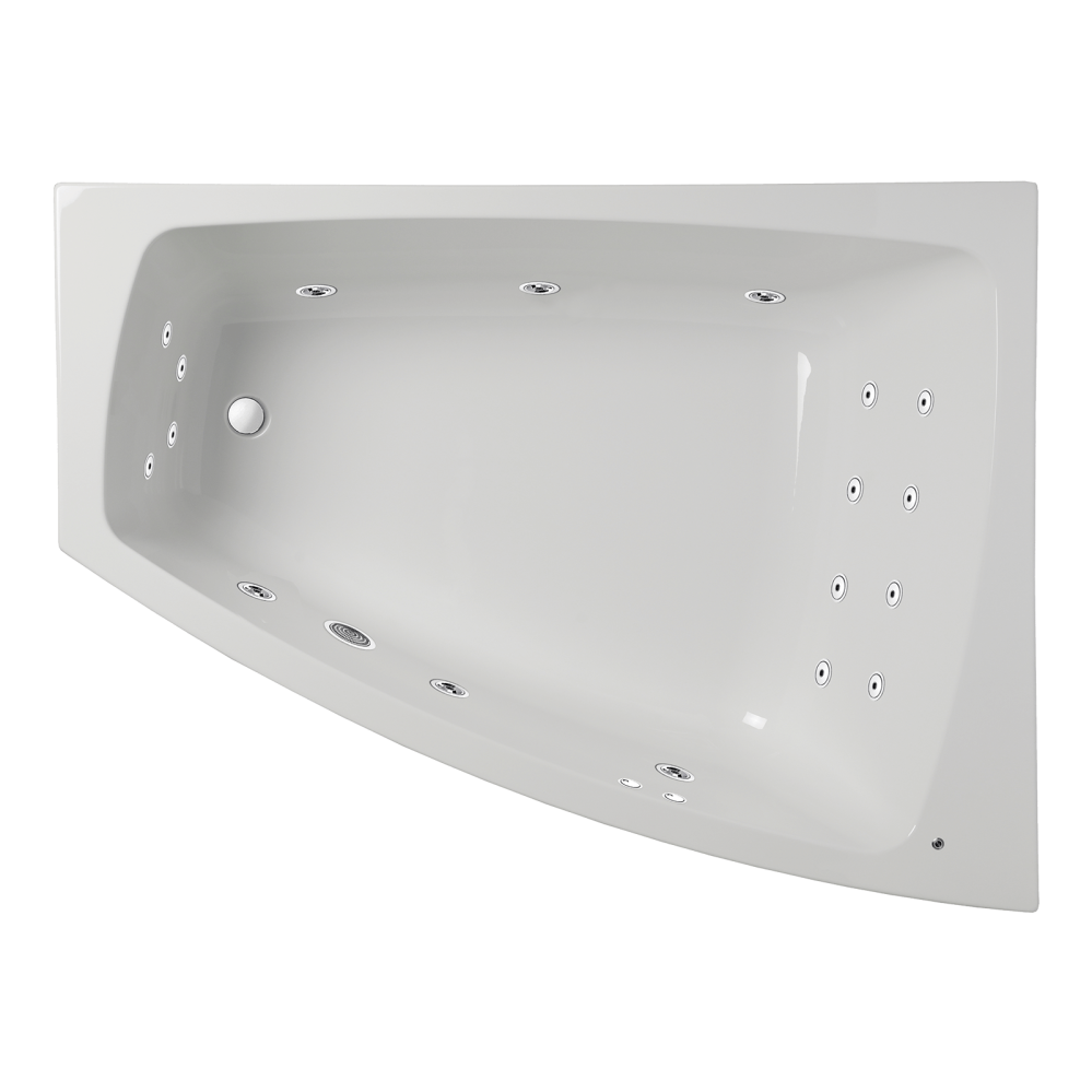 Massagebadkar Kungshamn tillverkas i förstärkt akryl Nordurit®. Modellen finns i både höger- och vänsterutförande. Nordurit®-förstärkningen håller värmen blängre och ger en ännu lägre ljudnivå i massagebadkaret då materialet är ljuddämpande. På sargkanten finns det plats för blandare.