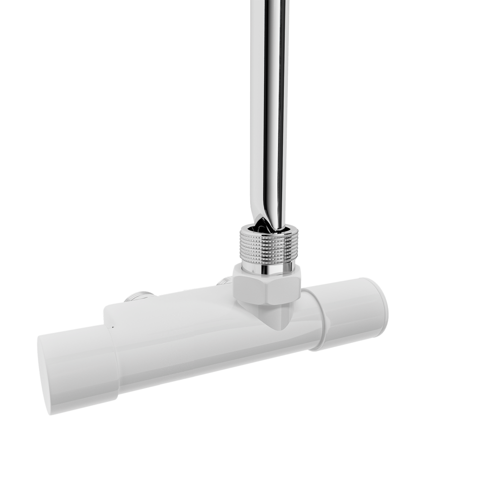 En designad manuell vattenventil för anslutning till vattnet från centralvärmesystemet. Vinklad ventil i högerutförande. 60 c/c.