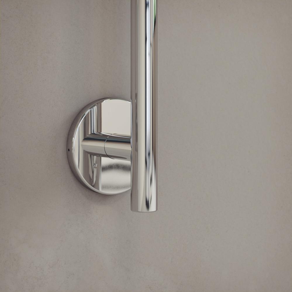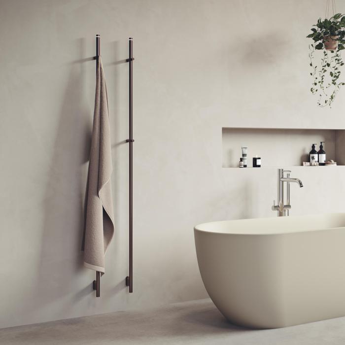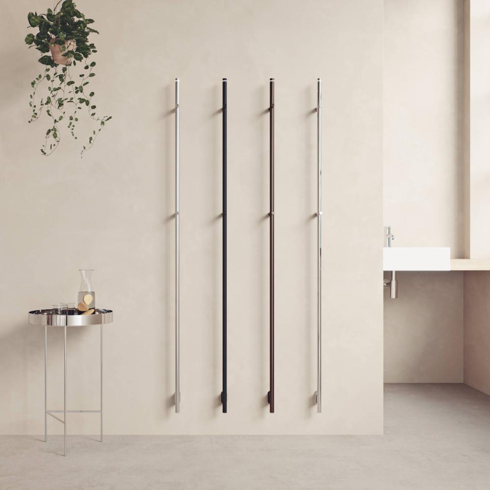 Röret är endast 22 mm brett och bottenfästet är lika smalt, för att skapa ett så lätt intryck som möjligt. Estetiken är minimalistisk, där det som finns kvar framhäver form och funktion. Den passar utmärkt i mindre badrum och det går med fördel att placera flera handdukstorkar i bredd.
