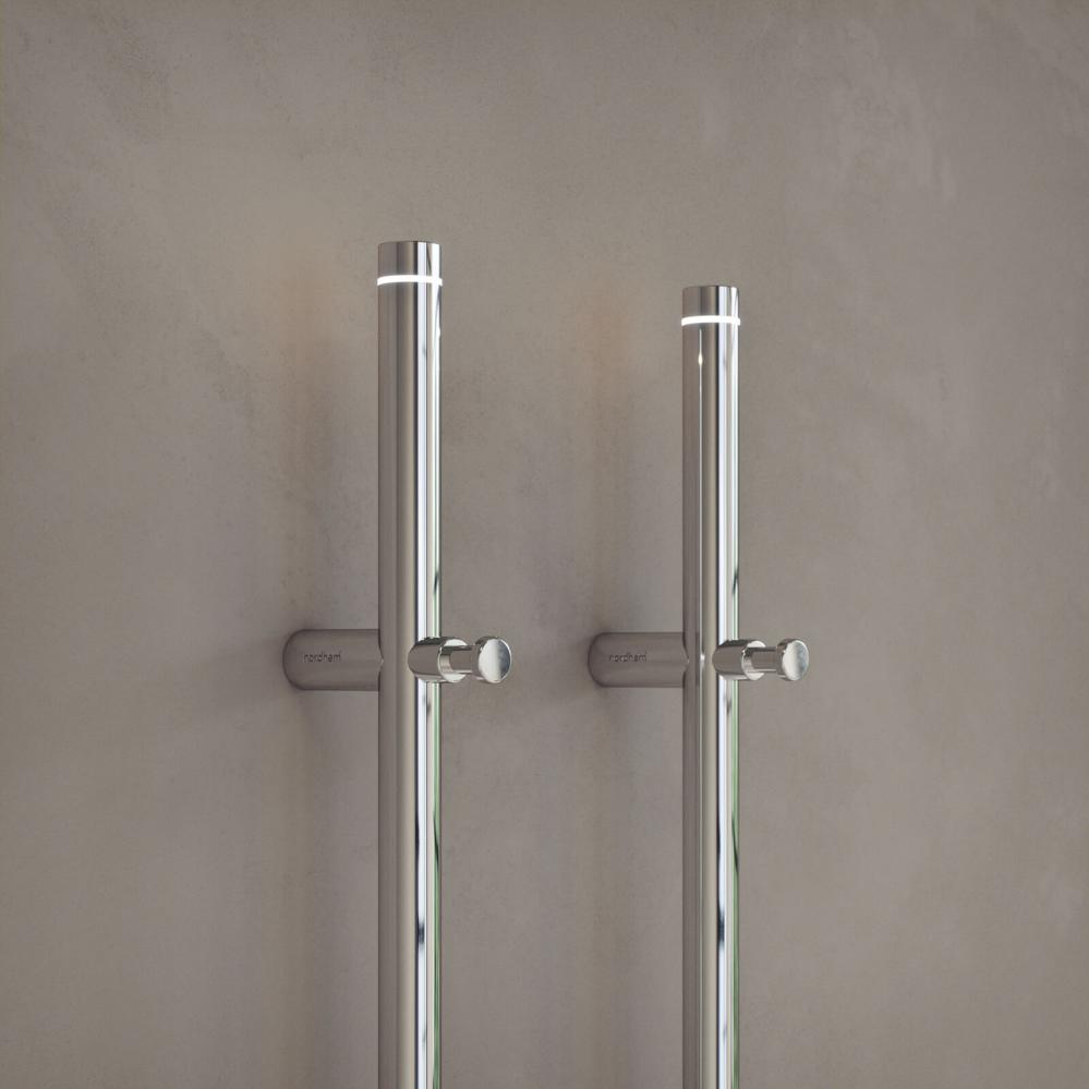 Nidingen är en nätt och lättplacerad vertikal handdukstork. Både smalt och runt bottenfäste ingår alltid.