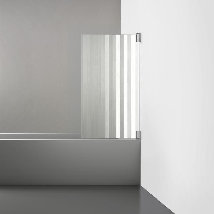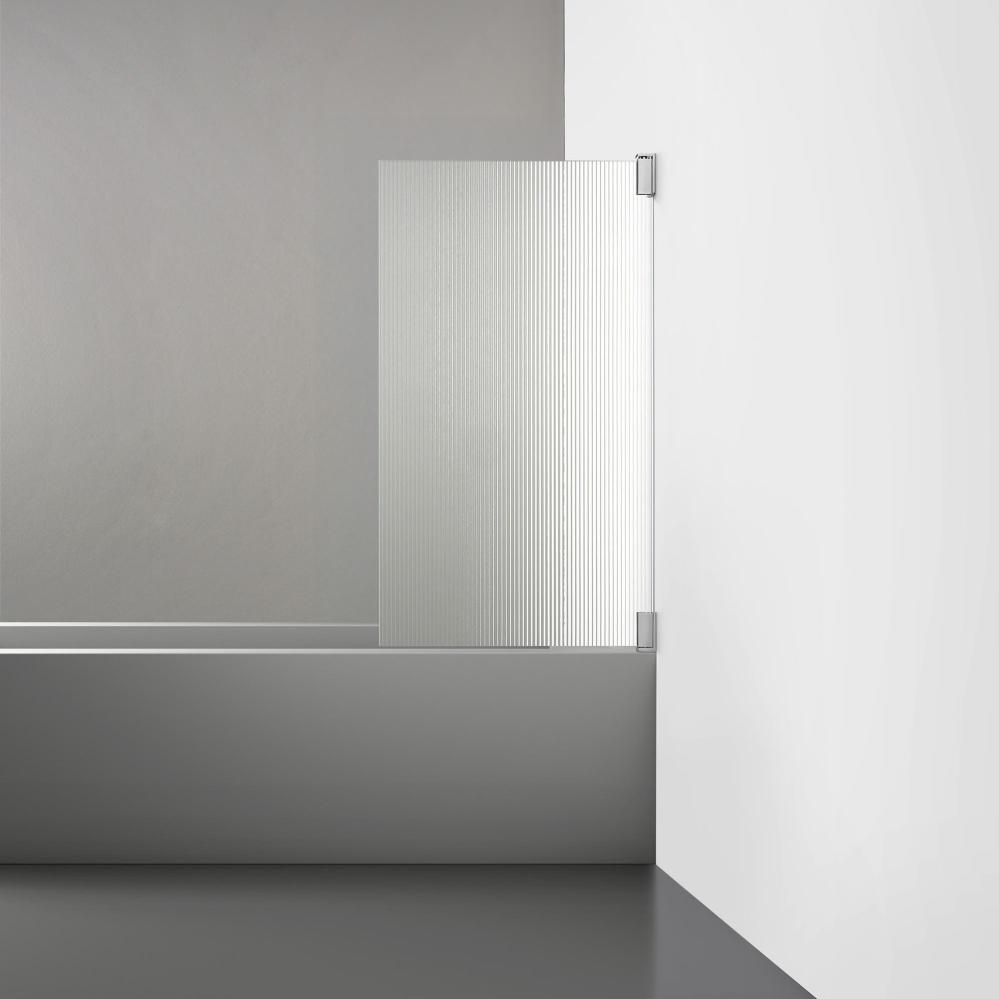 En skärmlösning som säkerställer att vattnet stannar kvar inom badkaret, tack vare en släplist och justerbara gångjärn som är designad för att möta specifika utrymmeskrav.