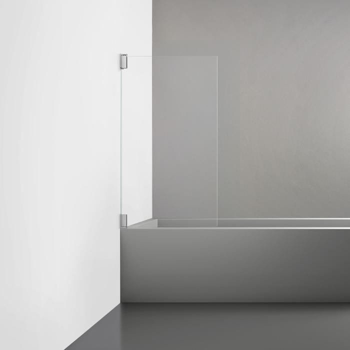 En skärmlösning som säkerställer att vattnet stannar kvar inom badkaret, tack vare en släplist och justerbara gångjärn som är designad för att möta specifika utrymmeskrav.