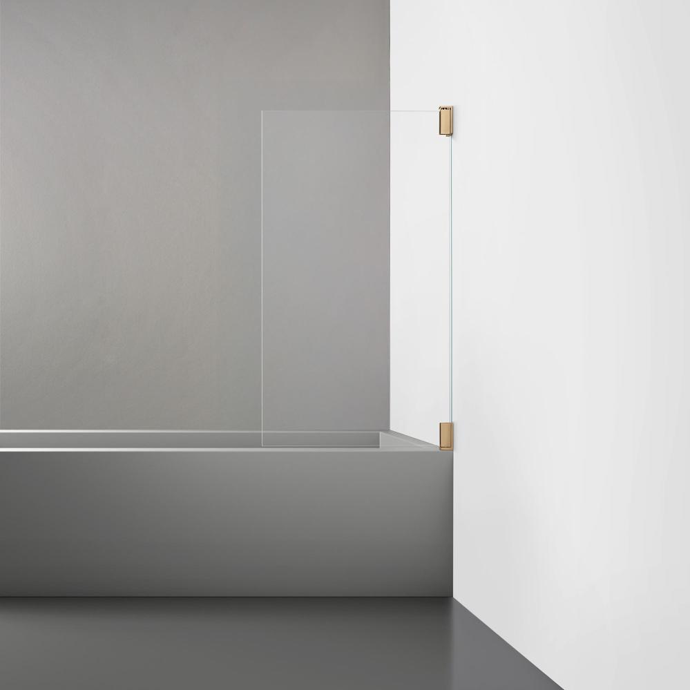 En skärmlösning som säkerställer att vattnet stannar kvar inom badkaret, tack vare en släplist och justerbara gångjärn som är designad för att möta specifika utrymmeskrav.